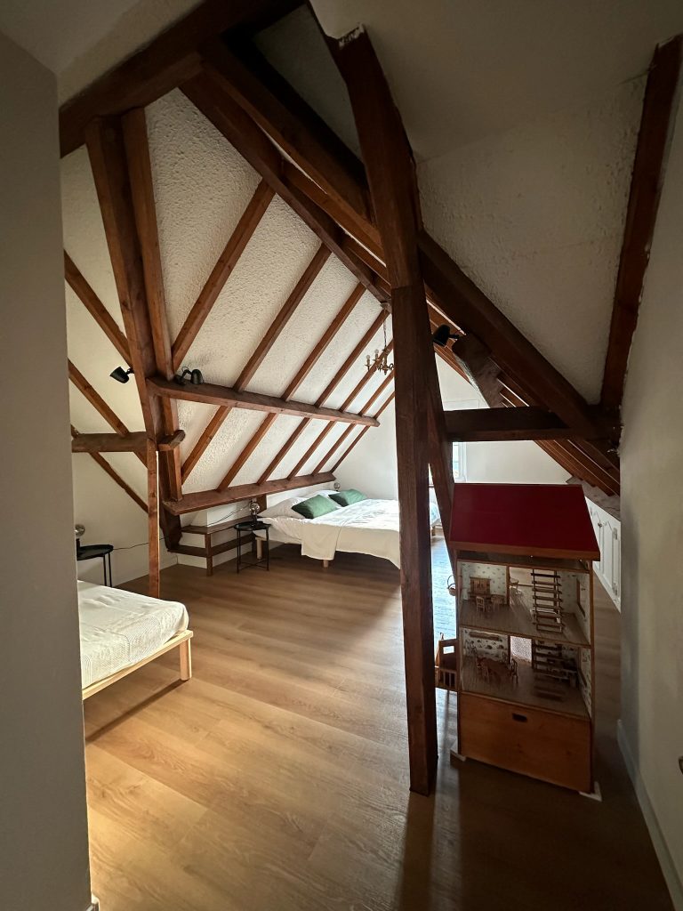 Das Haus besitzt 5 Schlafzimmer mit großen Betten (1mx2m bzw. 2mx2m) und Schränken / Wandschränken (und ein kleinem Kinderzimmer), insgesamt 12 Betten. Alle Zimmer sind modern eingerichtet, eines blieb jedoch traditionell (60er Jahre).